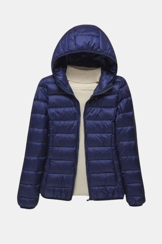 Ultralicht gewatteerde jas met rits en hoge kraag voor dames