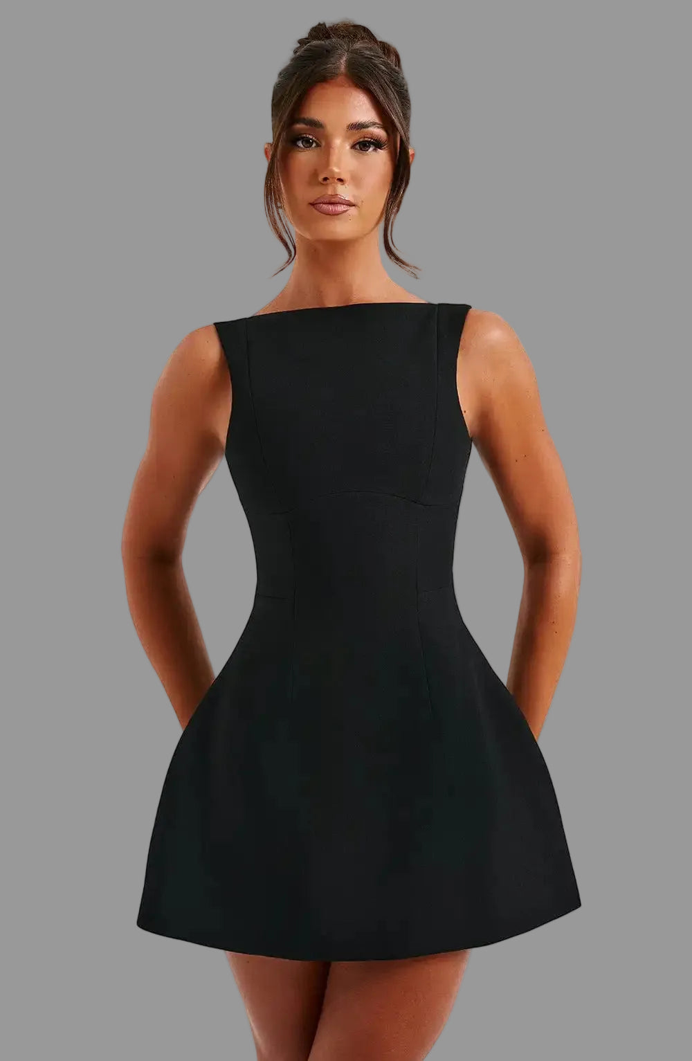Een A-lijn mini-jurk voor dames — een vrouwelijk model met subtiele elegantie dat eenvoudig te combineren is met verschillende accessoires en schoenen voor casual of feestelijke looks.